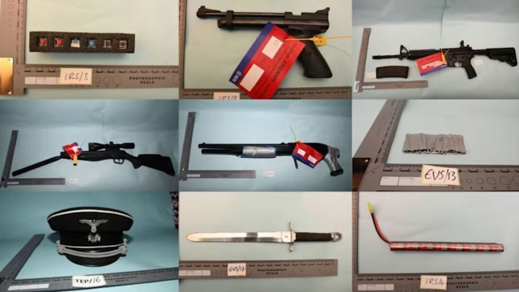 During a raid on his residence by counter-terrorism authorities in February of last year, a significant cache of weapons, such as a crossbow, knives, a gas-powered air pistol, and air rifles, was discovered, according to testimonies provided to jurors. Notably, an airgun found in his possession had the words “George Floyd” inscribed on it near the trigger. Additionally, the authorities had to call in bomb disposal experts and specialists in chemical, biological, and radiation threats after uncovering homemade explosives at the scene.